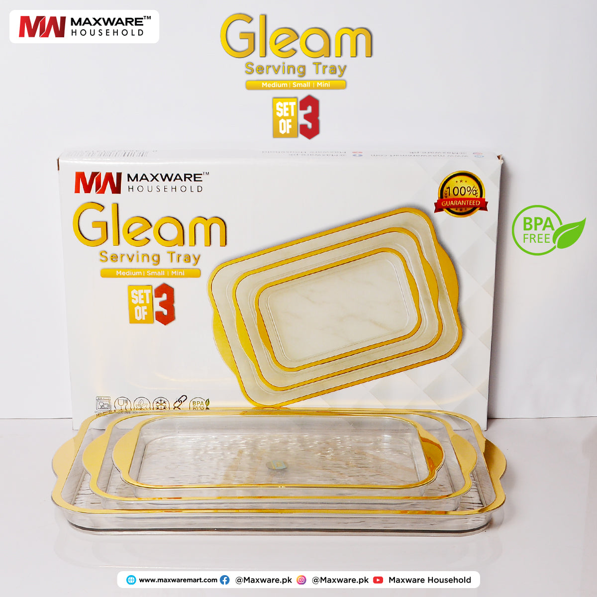 Gleam Serving Tray Set – Set of 3 (Medium, Small, Mini)