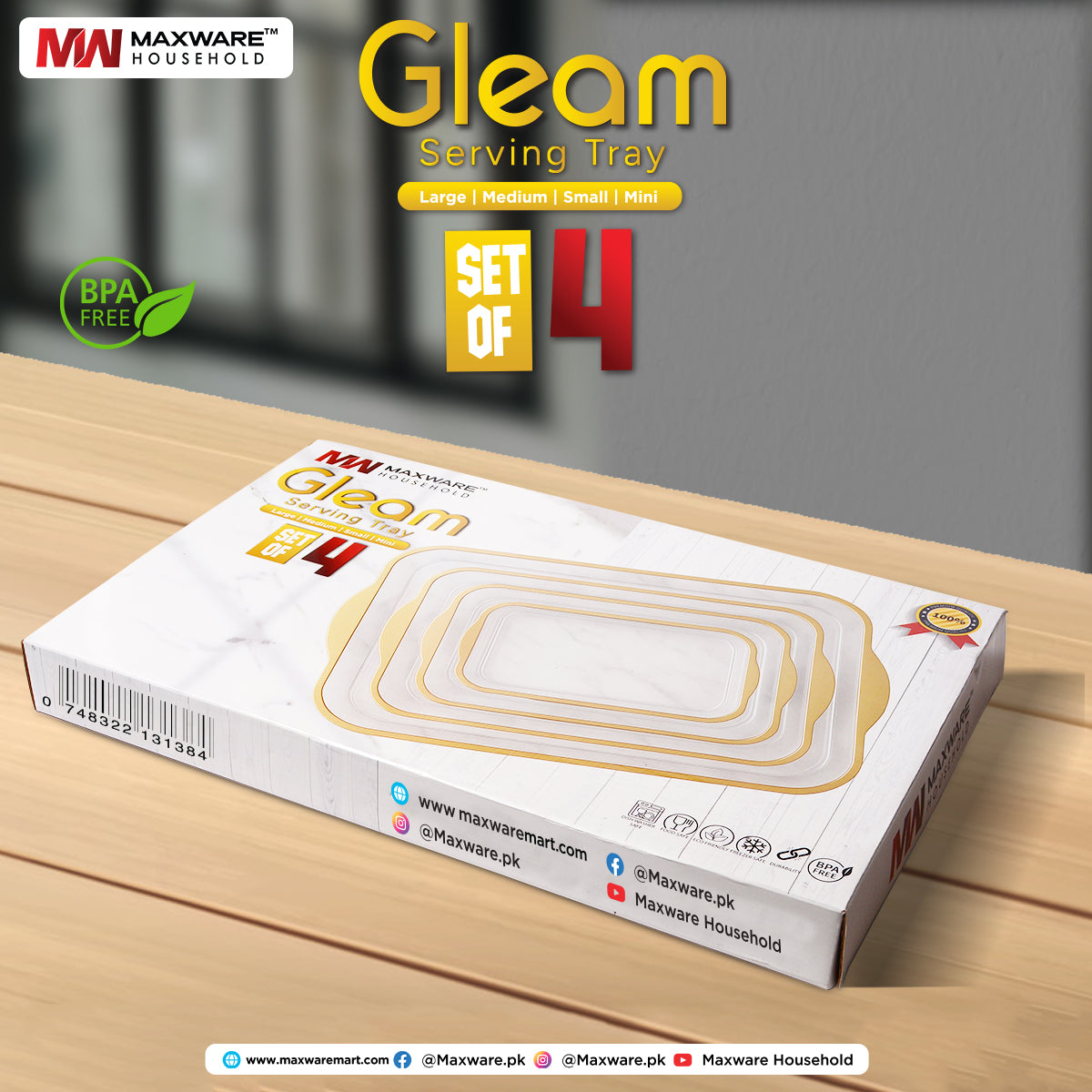 Gleam Serving Tray Set – Set of 4 (Large, Medium, Small, Mini)